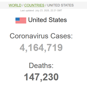For øyeblikket har USA store utfordringer knyttet til Covid-19. I skrivende stund er dette tallene fra Worldometers (nettsted som gir sanntidsstatistikk for ulike emne):