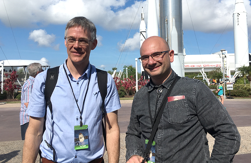 The ASIM launch attracted interest from all over the world, including Norway of course. In the image below we see BCSS leader Nikolai Østgaard together with TV2 journalist Fredrik Græsvik, on their way to the Kennedy Space Center campus for an interview.