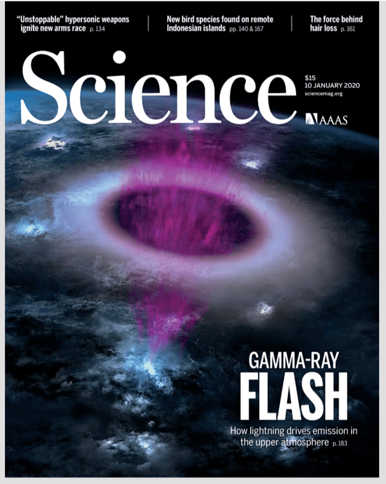 The groundbreaking results caused lots of media attention all over the world, as seen here. This was followed by the greatest recognition: The new discovery about gamma ray flashes from ASIM was promoted on the cover page of Science in January 2020! The last time a group in Norway received a similar recognition was 10 years ago, when a paper by Karl M. Laundal and Nikolai Østgaard about asymmetries in the northern and southern lights became the front page of Nature.