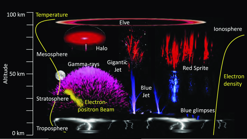About 30 years ago, some unexpected lightning was discovered to occur above thunderclouds. These transient luminous events were of different types and were given mythical names like e.g. blue jets, elves, and red sprites. Another phenomena found to sometimes occur during storm clouds was the production of gamma rays, and these were known as terrestrial gamma-ray flashes (TGFs).