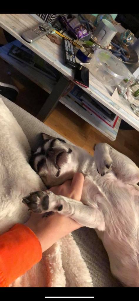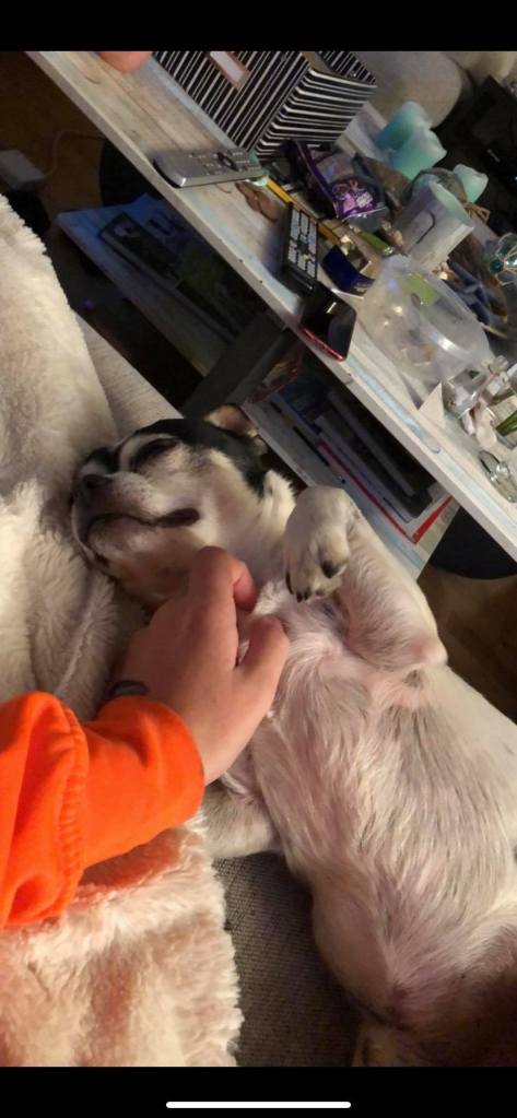 Roley sin første eier/venn/mamma var Priscila, og siden hun bor i Florida, USA, tok vi farvel med henne via Google Meet. Til tross for guttens hørseltap og etterhvert sviktende syn, velger jeg å tro at Roley fikk med seg det meste fra den 2 timer lange videoseansen 😉 ❤