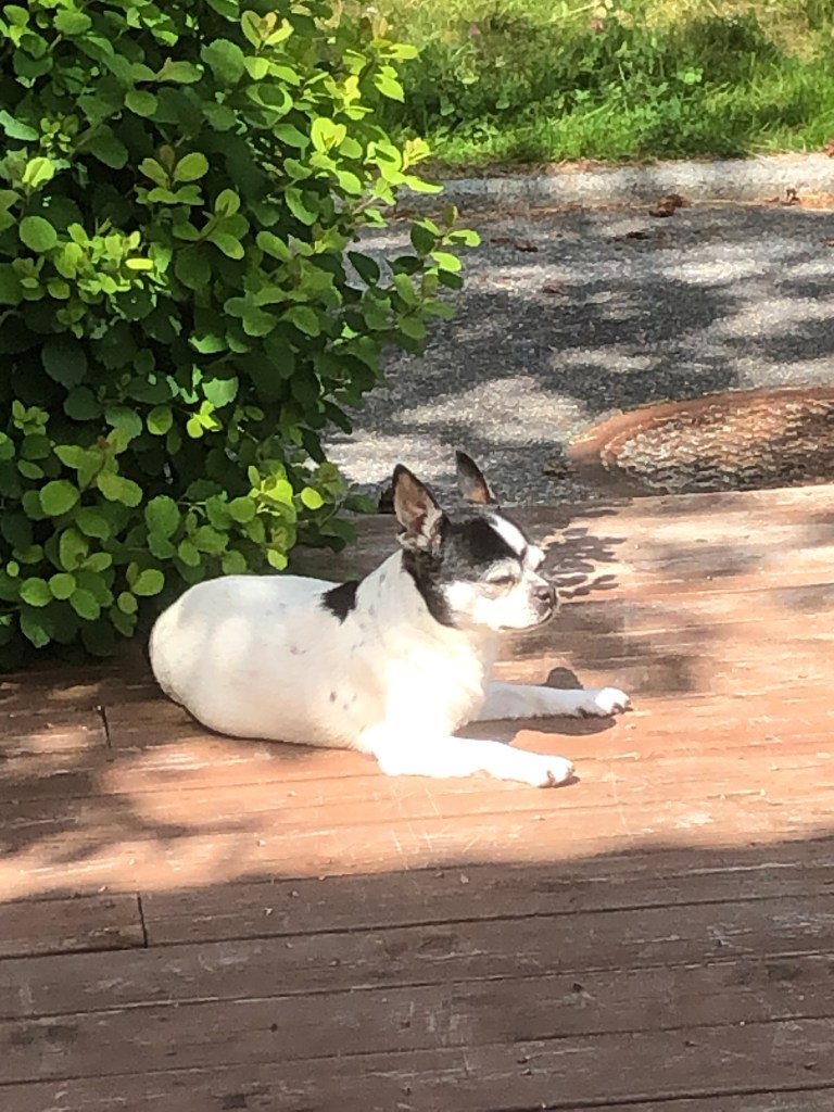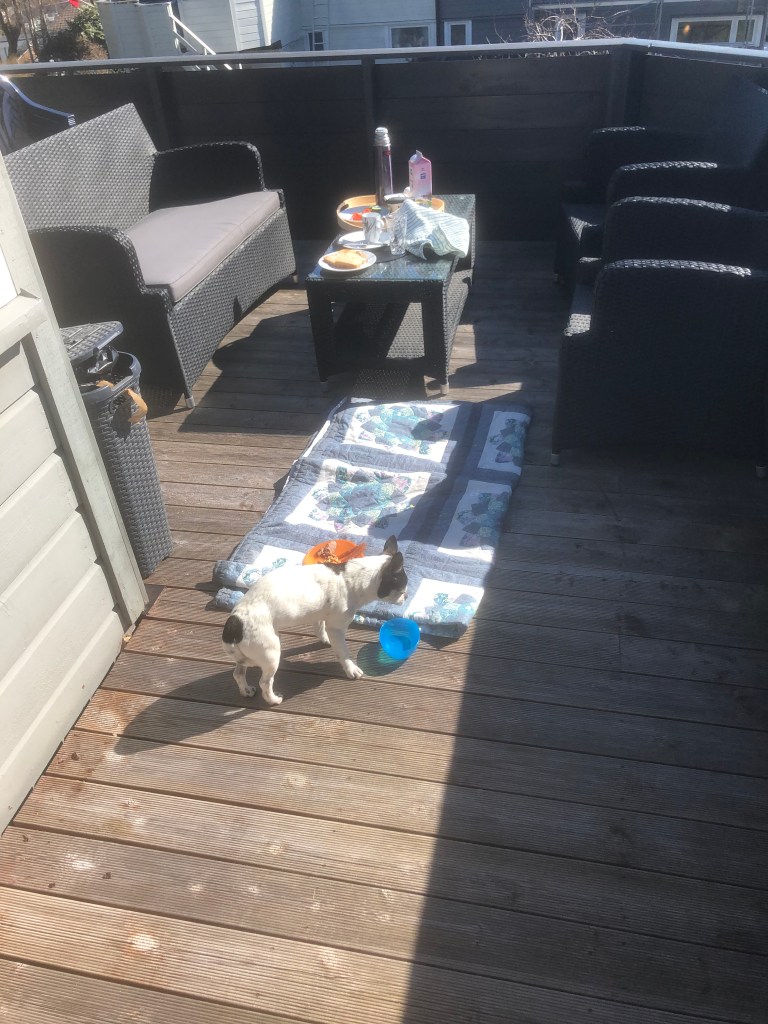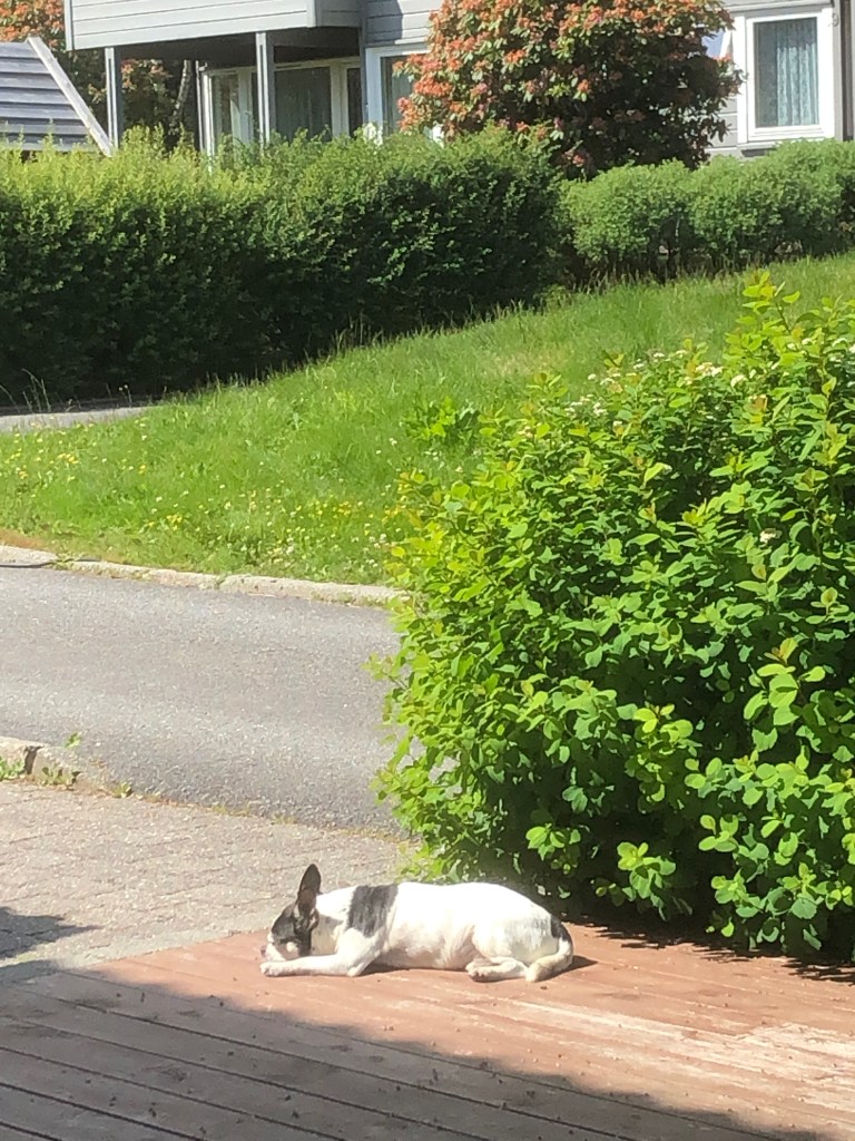 Denne siste uken til Roley har forløpt tilsvarende bra, da han har fått tilbrakt mye tid med mine foreldre, som han er svært glad i😍. Disse nevnte foreldrene mine prøver forøvrig å lære meg å få grønne fingre, sånn at jeg kan ta meg av min nye hage i Varåsgrenda på Os. Så de siste dagene har vi alle sammen vært ute og jobbet med både planter, plen, bark og brunsnegler, og Roley har utvilsomt kost seg der han har “vandret”/hinket rundt som den vakthunden han er, og sjekket at alle jobber så godt de kan😁.