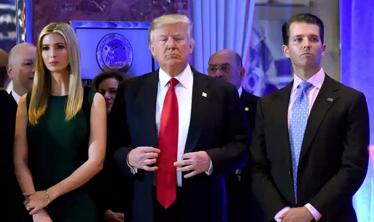 Donald Trump with Ivanka Trump and Donald Trump Jr in New York, New York, on 11 January 2017.